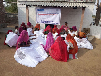GVCS trains women through various training programs like skill development, design development, digital literacy, etc. Through these trainings, women not only upgrade their traditional craftsmanship, but they also update their art according to new designs and market requirements. So far, more than 50,000 women have benefited from these programs, and thousands of women have become self-reliant through their art.